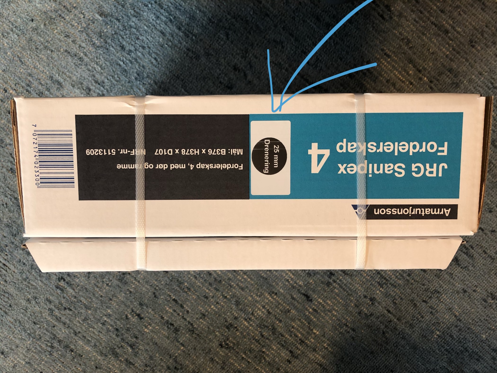 Det vil i en overgangsperiode ligge skap med ulikt innhold på hentelagrene, og skap med «nytt» innhold merkes derfor med "25 mm drenering" —se bildet øverst i saken.