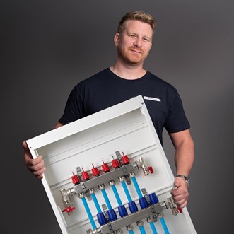 Vårt tidligere gulvvarmesystem, Arjonfloor, er historie. Det nye heter Armaturjonsson Gulvvarme. Denne oppgraderingen gjør det enda enklere og rimeligere for rørleggerne, sier en svært fornøyd Robin Thomsen, selskapets produktsjef i varme- automatikk- og vannbehandling.